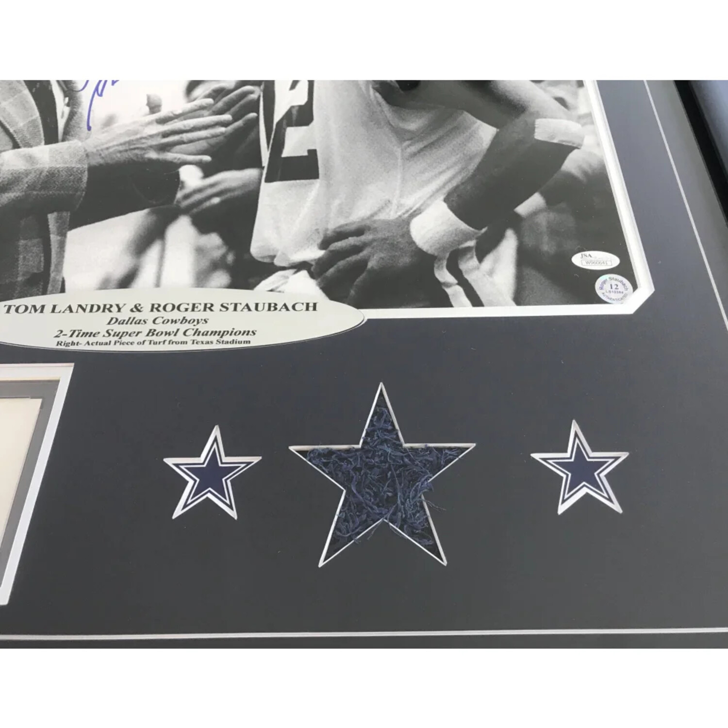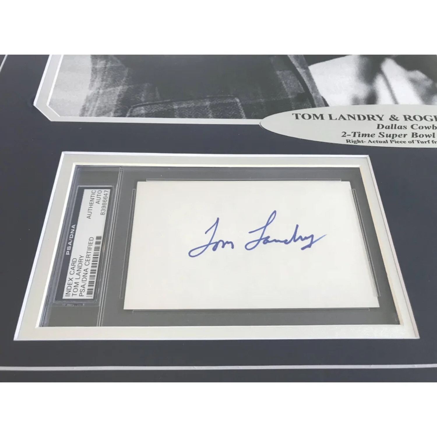 Honor two Cowboys legends with this Roger Staubach & Tom Landry Signed Dallas Cowboys 16x20 Framed Photo With Game-Used Texas Stadium Turf. A rare find, this unique collectible features signatures from both icons and a verified piece of turf from the end zone of the original Texas Stadium.