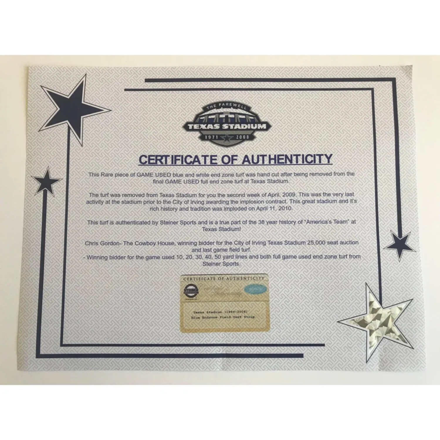 — Features Authentic Game-Used Turf From Texas Stadium End Zone