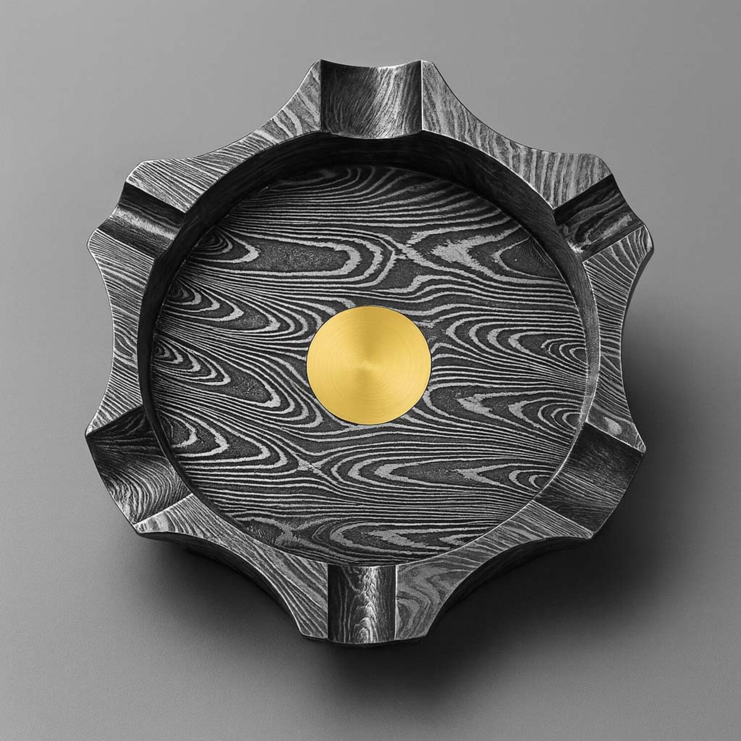 Crafted from striking Damascus steel, these one-of-a-kind ashtrays from Bob’s Twisted Knives bring serious weight and edge to your smoking setup. Each piece in the Smoke Hub series features bold silhouettes, carved rests, and layered patterns forged into the metal itself. Choose from round, square, or sculptural designs—some with brass accents—all made to impress whether you're lighting up solo or hosting a smoke session.