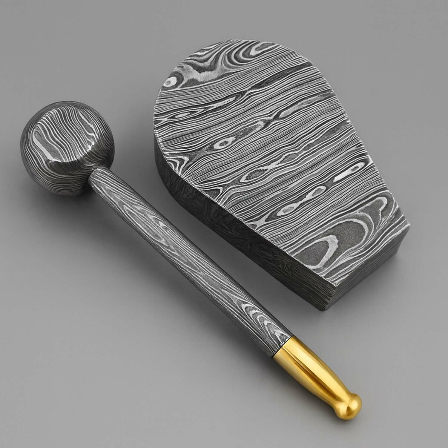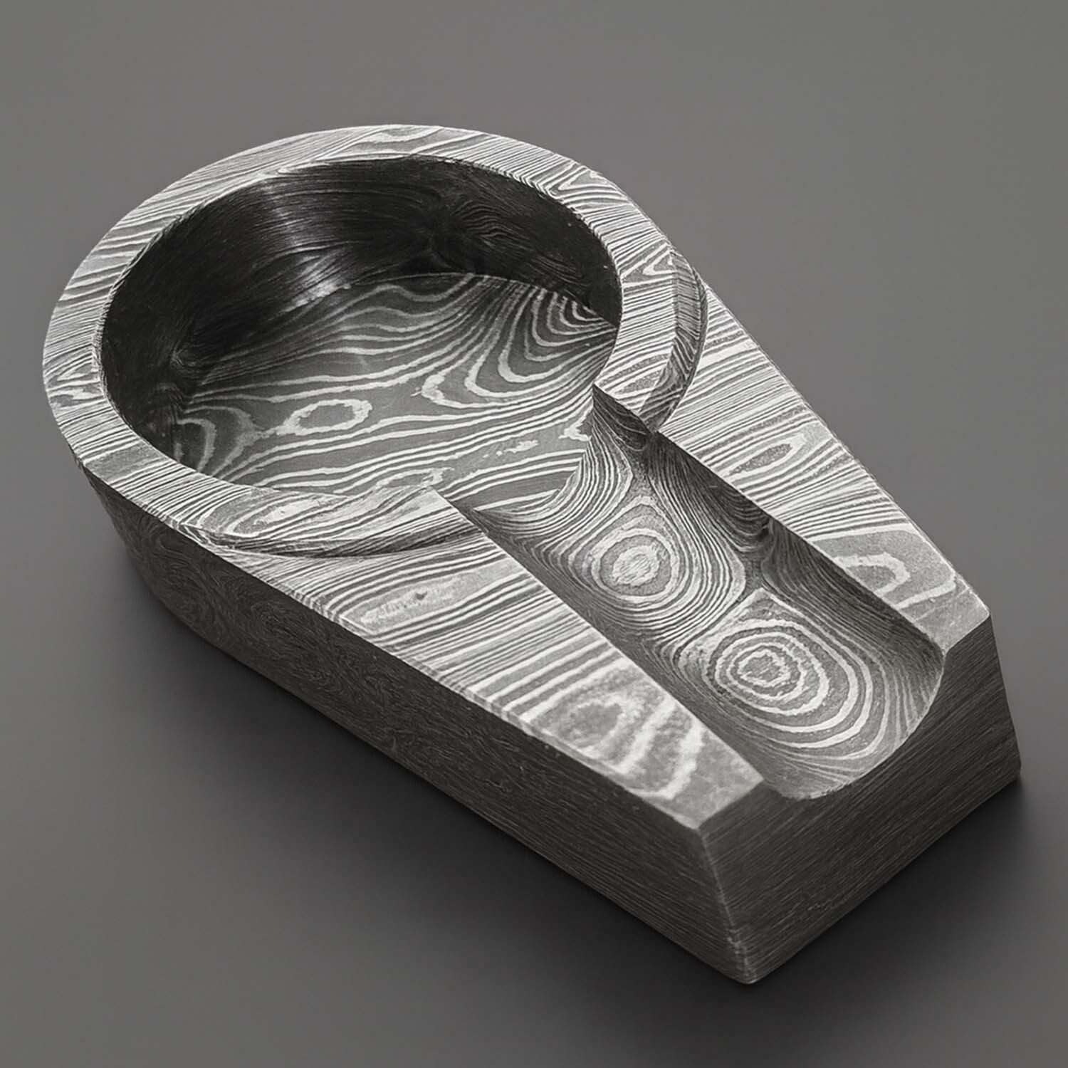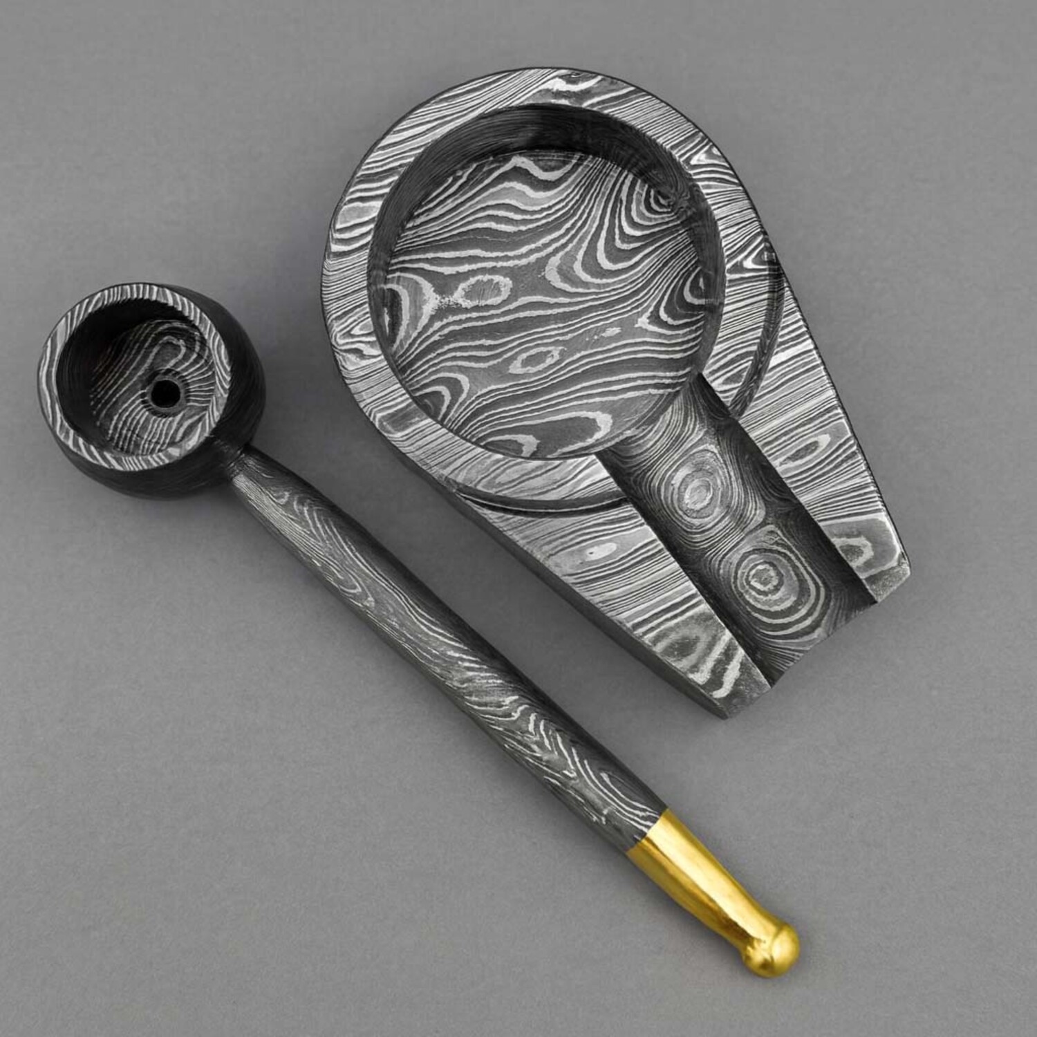 Crafted from striking Damascus steel, these one-of-a-kind ashtrays from Bob’s Twisted Knives bring serious weight and edge to your smoking setup. Each piece in the Smoke Hub series features bold silhouettes, carved rests, and layered patterns forged into the metal itself. Choose from round, square, or sculptural designs—some with brass accents—all made to impress whether you're lighting up solo or hosting a smoke session.