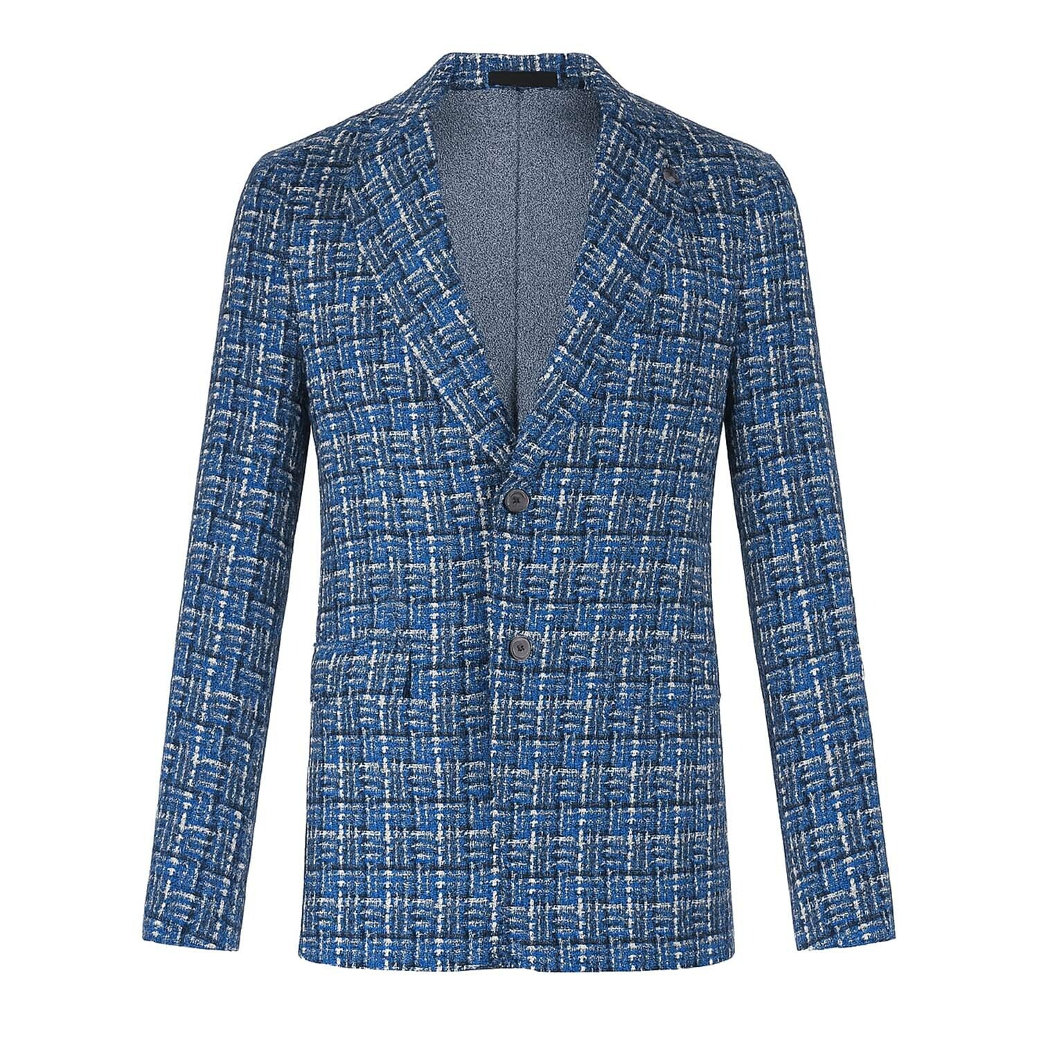 This refined blazer features a subtle textured weave, notch lapels, and a sleek two-button closure. Front flap pockets and a patterned interior add modern sophistication. Versatile and polished, it pairs effortlessly with dress shirts or knits for smart weekday or evening style.