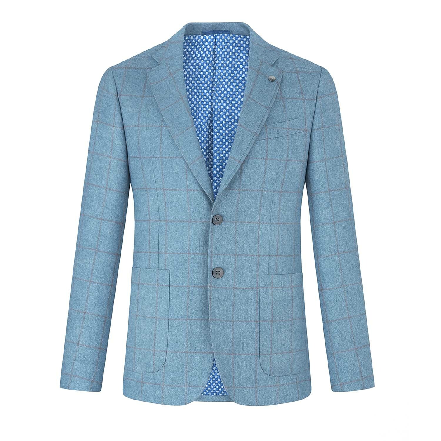 Windowpane Single-Breasted w/ Two-Button Blazer // Light Blue