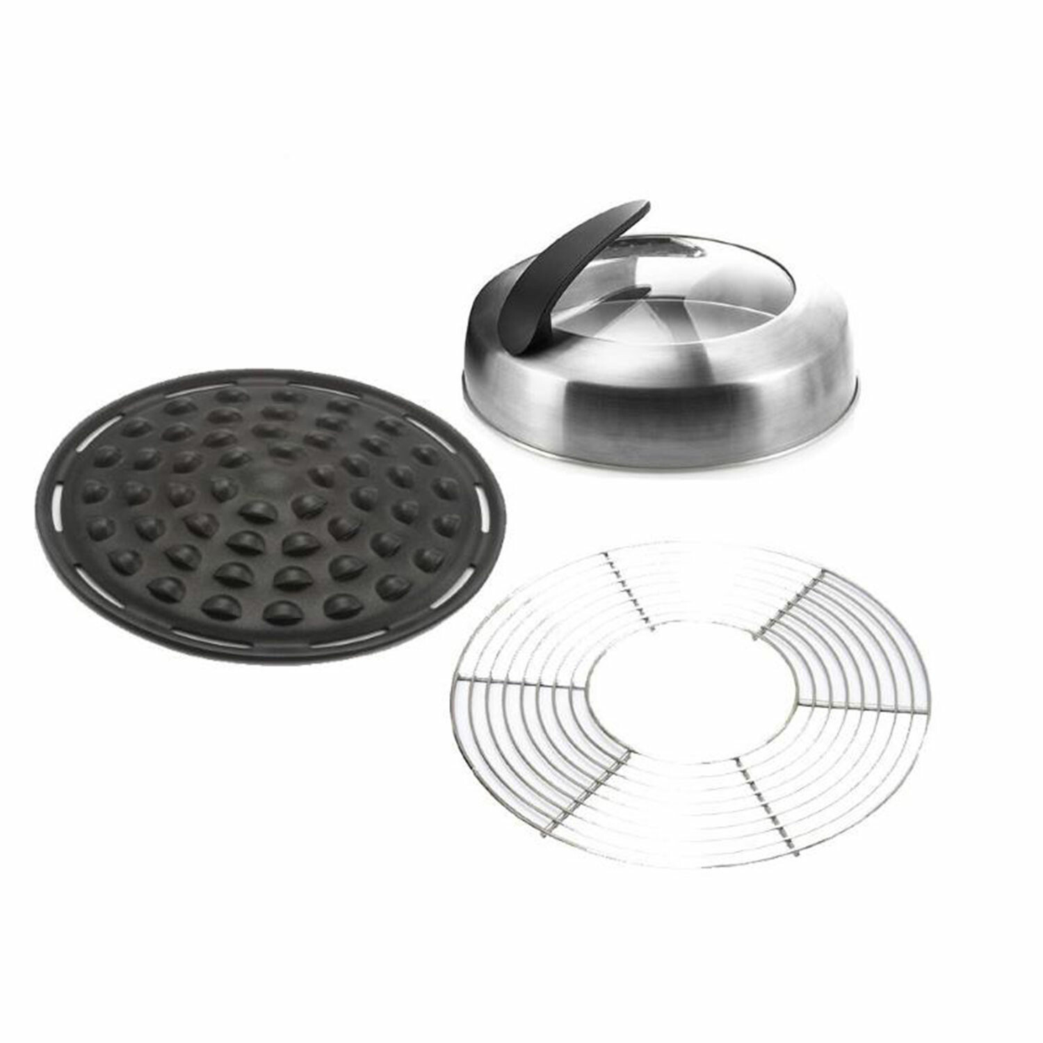 Homping Grill Lid Set is the ideal accessory upgrade for your Homping Grill, expanding your cooking options and improving safety. This set includes a stainless steel lid, mesh plate, and specialized pork plate. Use the mesh plate with the lid for steaming, while the pork plate efficiently channels oil and fat away to minimize flare-ups and fire risks for perfectly cooked pork every time.