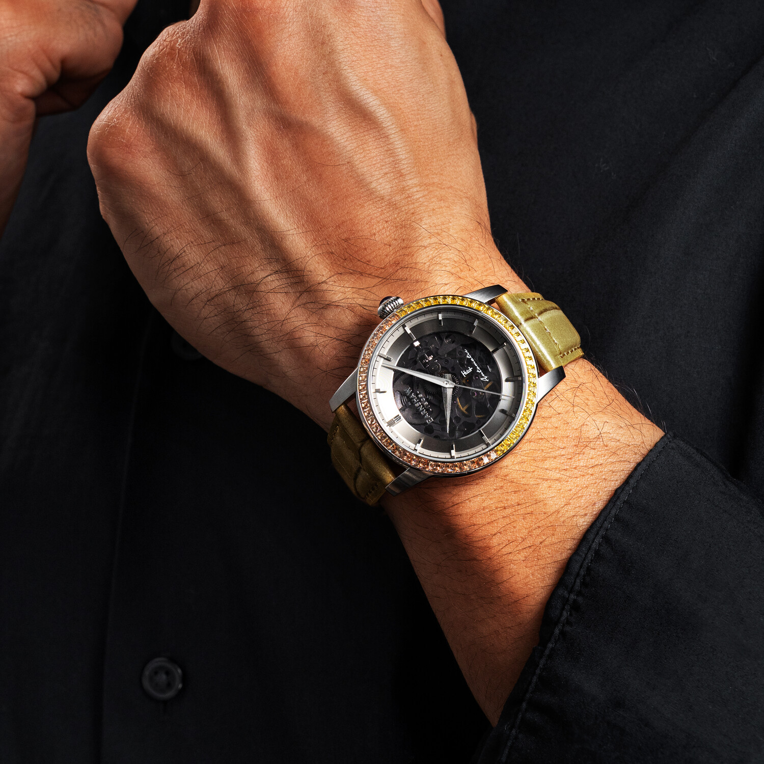 COLLECTION: GLORY MODEL: ES-8301-02 MOVEMENT: AUTOMATIC CASE MATERIAL: STAINLESS STEEL CASE DIAMETER (MM): 40 CASE THICKNESS (MM): 12.5 CASE SHAPE: ROUND CASE COLOR: STAINLESS STEEL DIAL COLOR: KHAKI BAND: GENUINE LEATHER STRAP BAND COLOR: TAN BUCKLE: STRAP BUCKLE BAND WIDTH (MM): 20 WATER RESISTANCE: 5 ATM WATCH WEIGHT (G): 80 WARRANTY: 2 YEARS