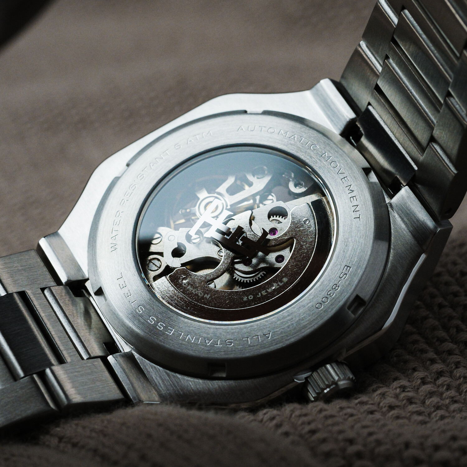 COLLECTION: EXETER MODEL: ES-8300-33 MOVEMENT: AUTOMATIC CASE MATERIAL: STAINLESS STEEL CASE DIAMETER (MM): 42 CASE THICKNESS (MM): 13 CASE SHAPE: ROUND CASE COLOR: STAINLESS STEEL DIAL COLOR: KHAKI BAND: STAINLESS STEEL BAND COLOR: STAINLESS STEEL BUCKLE: DEPLOYMENT BUCKLE WITH PUSH BUTTONS BAND WIDTH (MM): 25 WATER RESISTANCE: 5 ATM WATCH WEIGHT (G): 150 WARRANTY: 2 YEARS