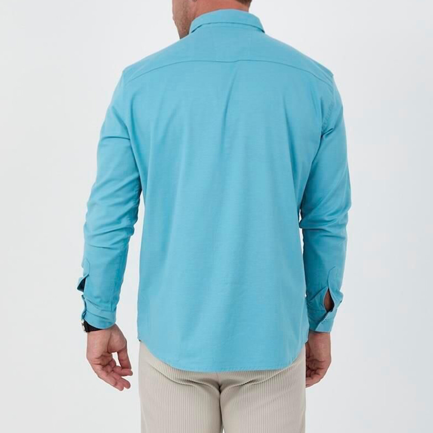 Solid Long-Sleeve Button-Up Shirt // Cyan