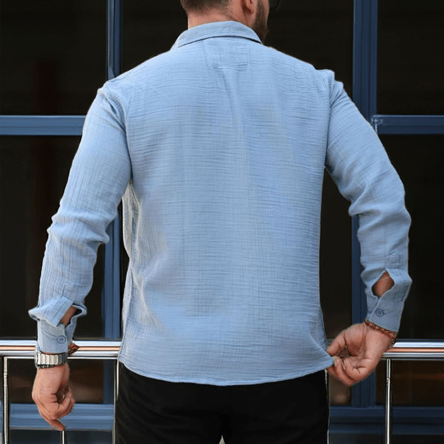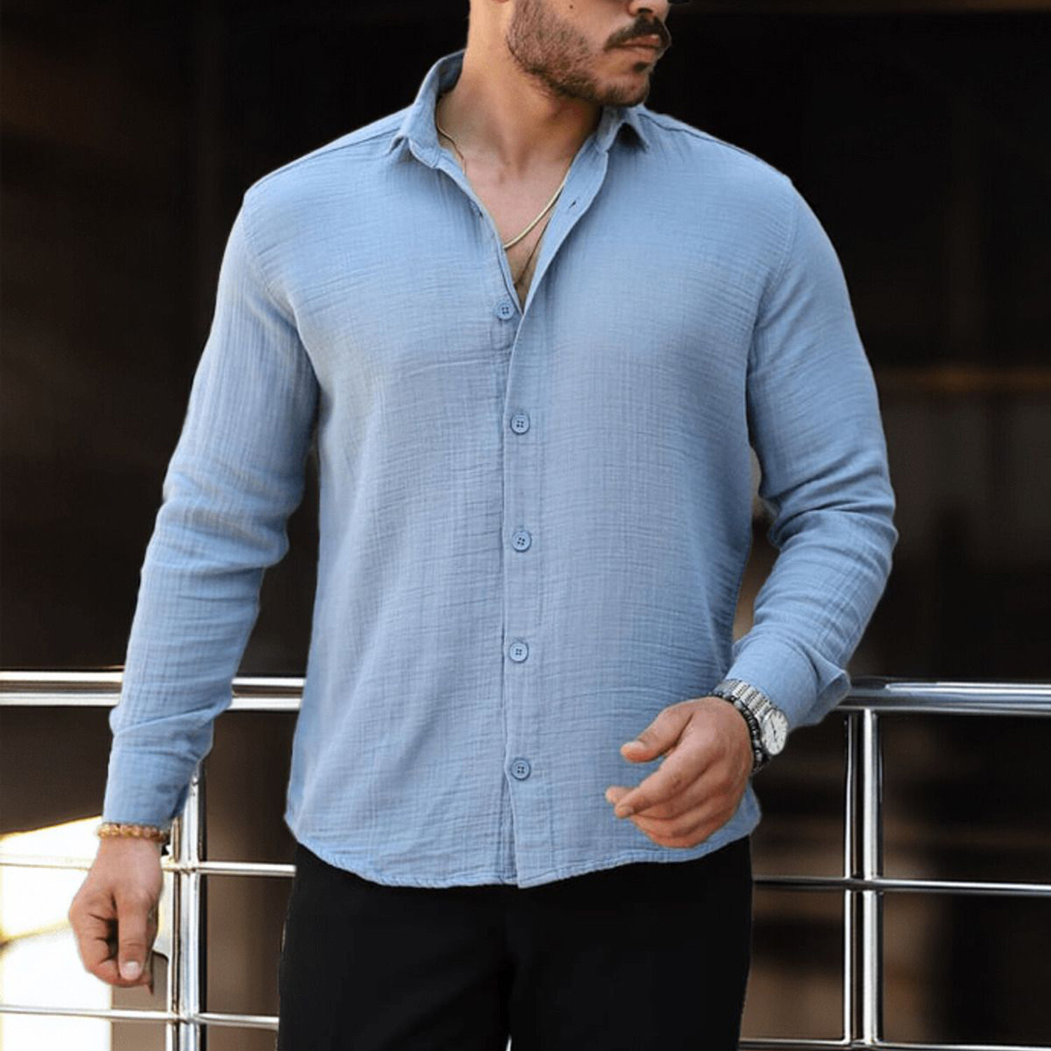 Solid Textured Long-Sleeve Button-Up Shirt // Cold Blue