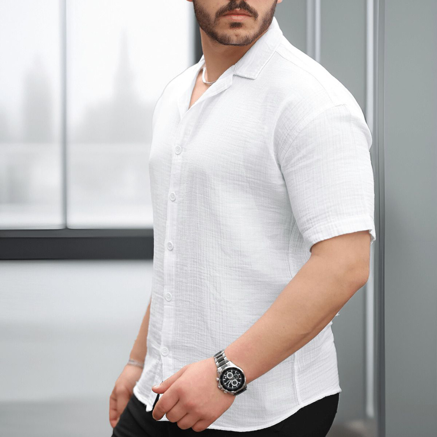 Open Collar Short-Sleeve Button-Up Shirt // White