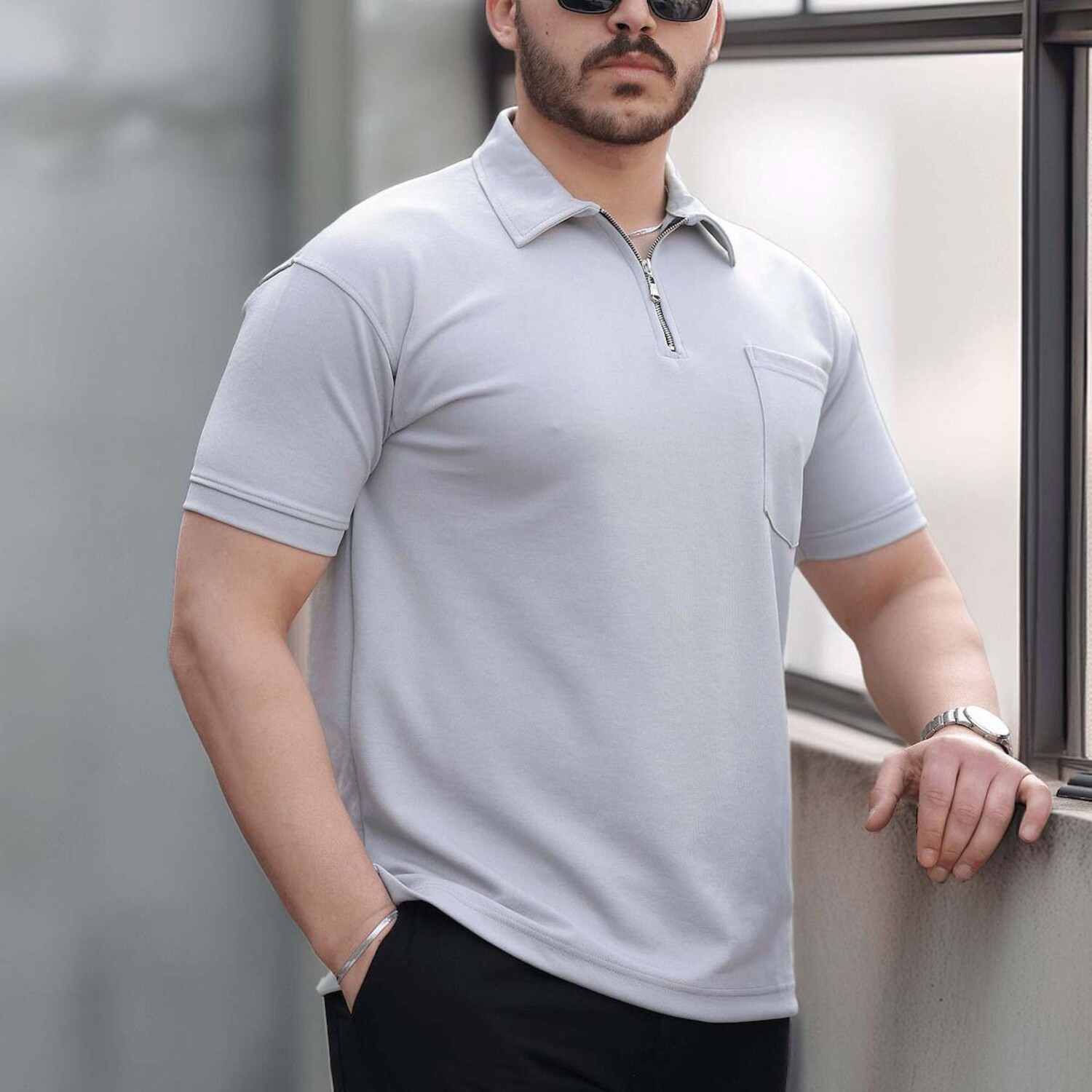 Solid w/ Pocket Zip Polo Shirt // Gray