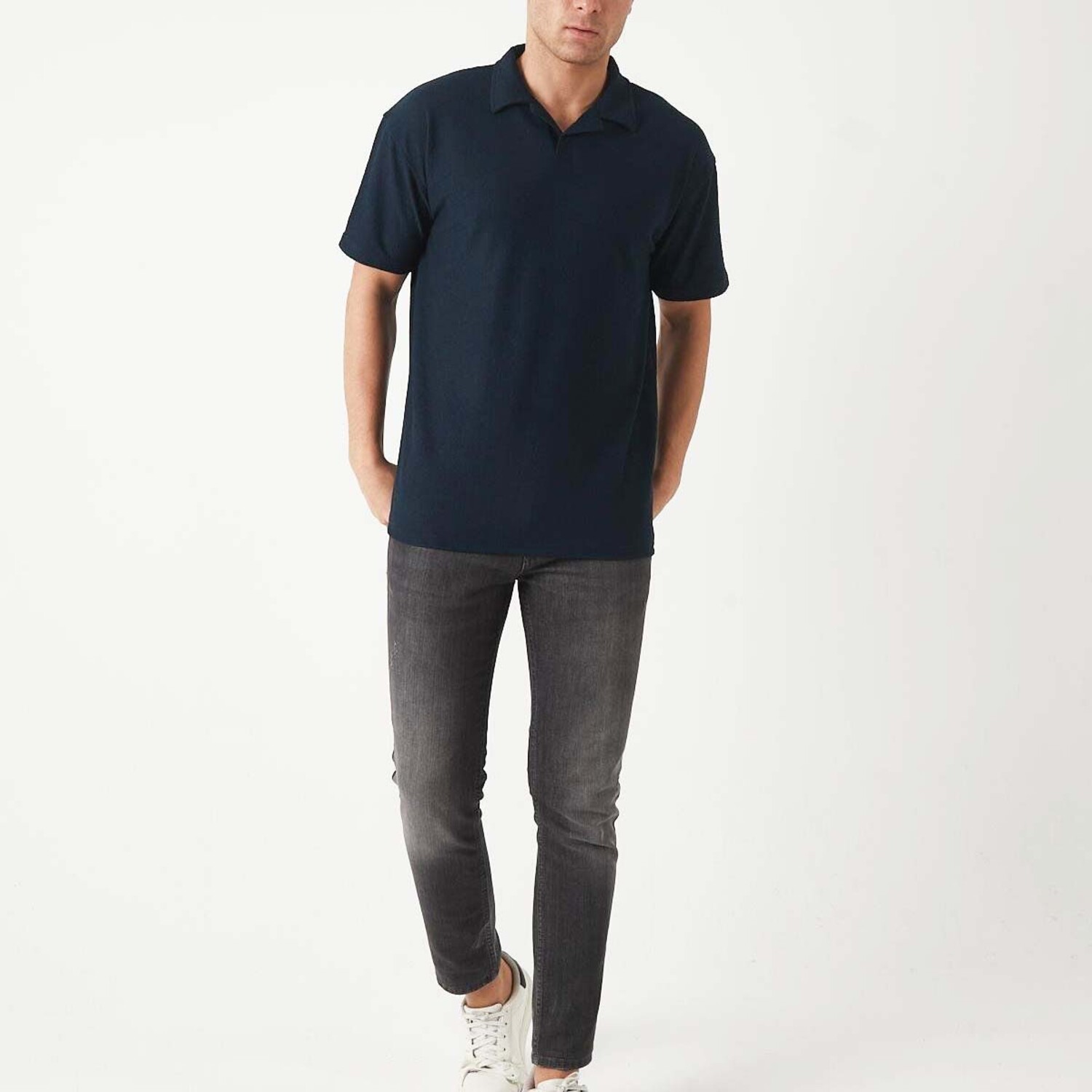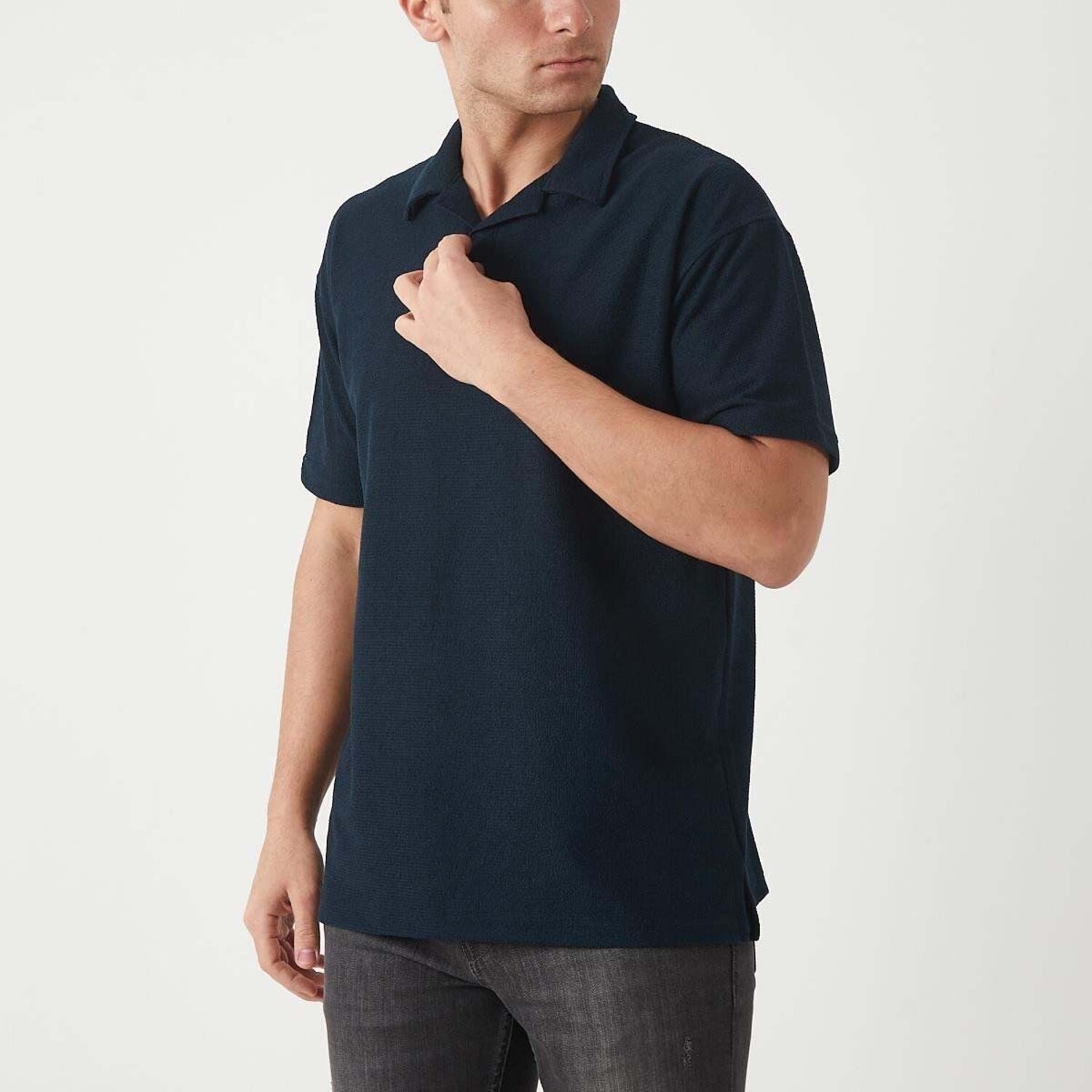 Textured Zip Polo Shirt // Navy