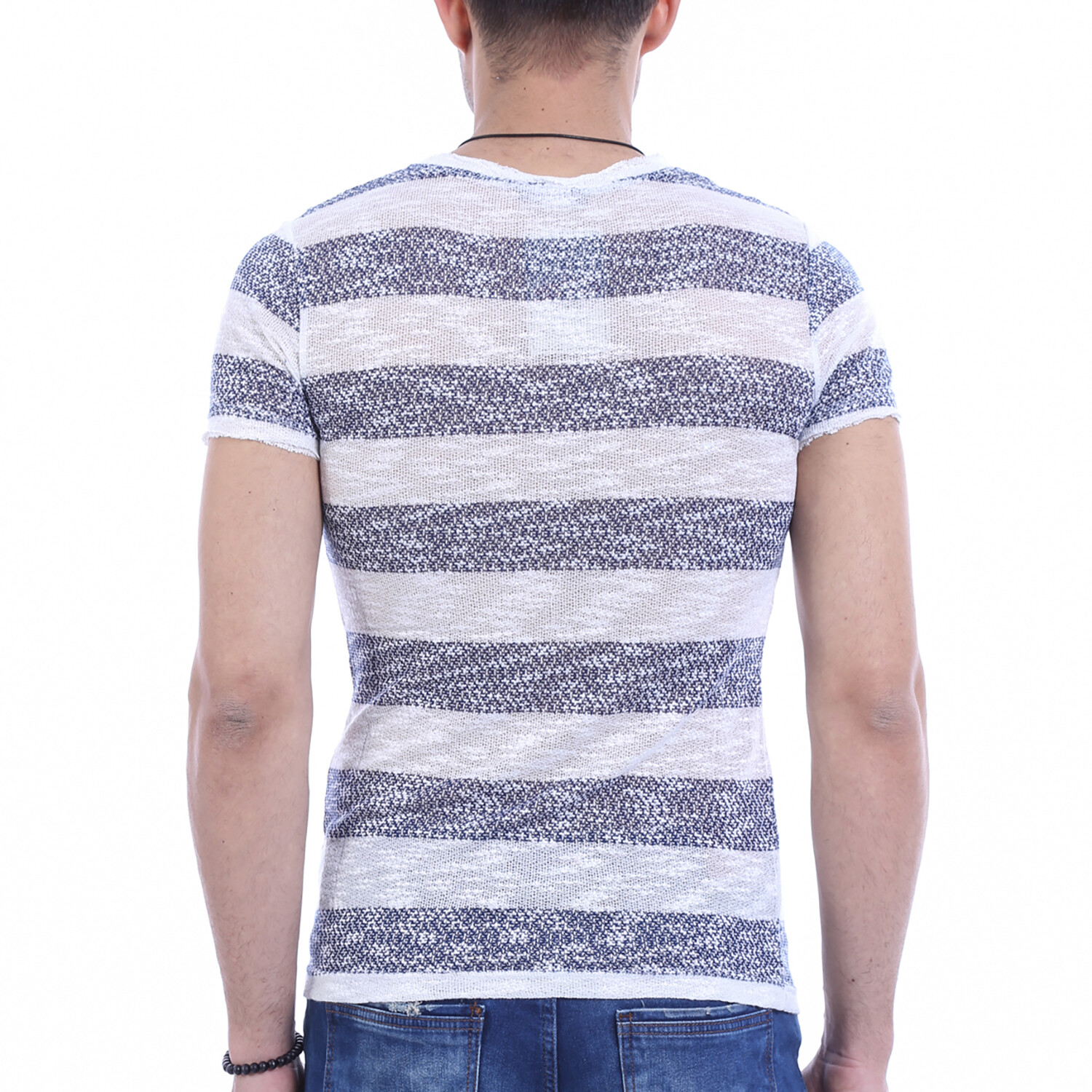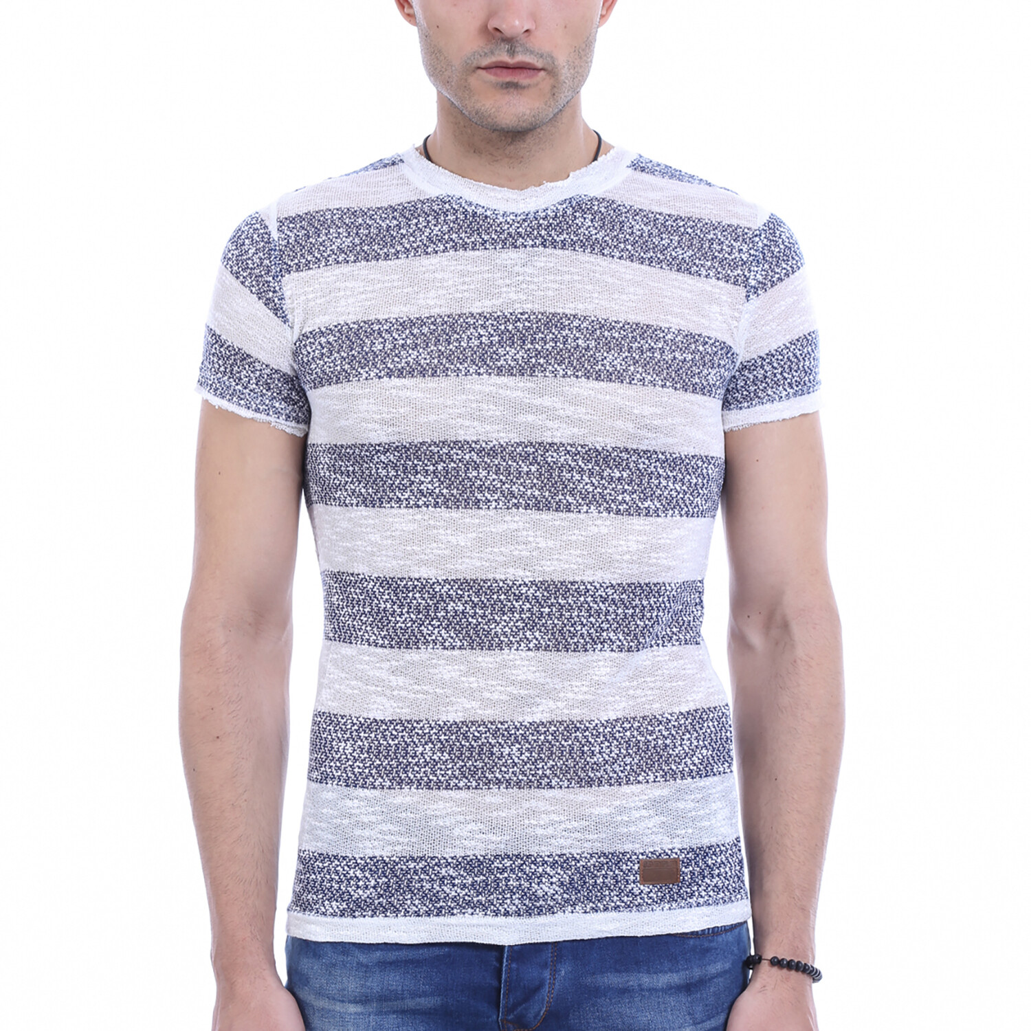 Jovanni Circle Neck Striped T-Shirt // Ecru