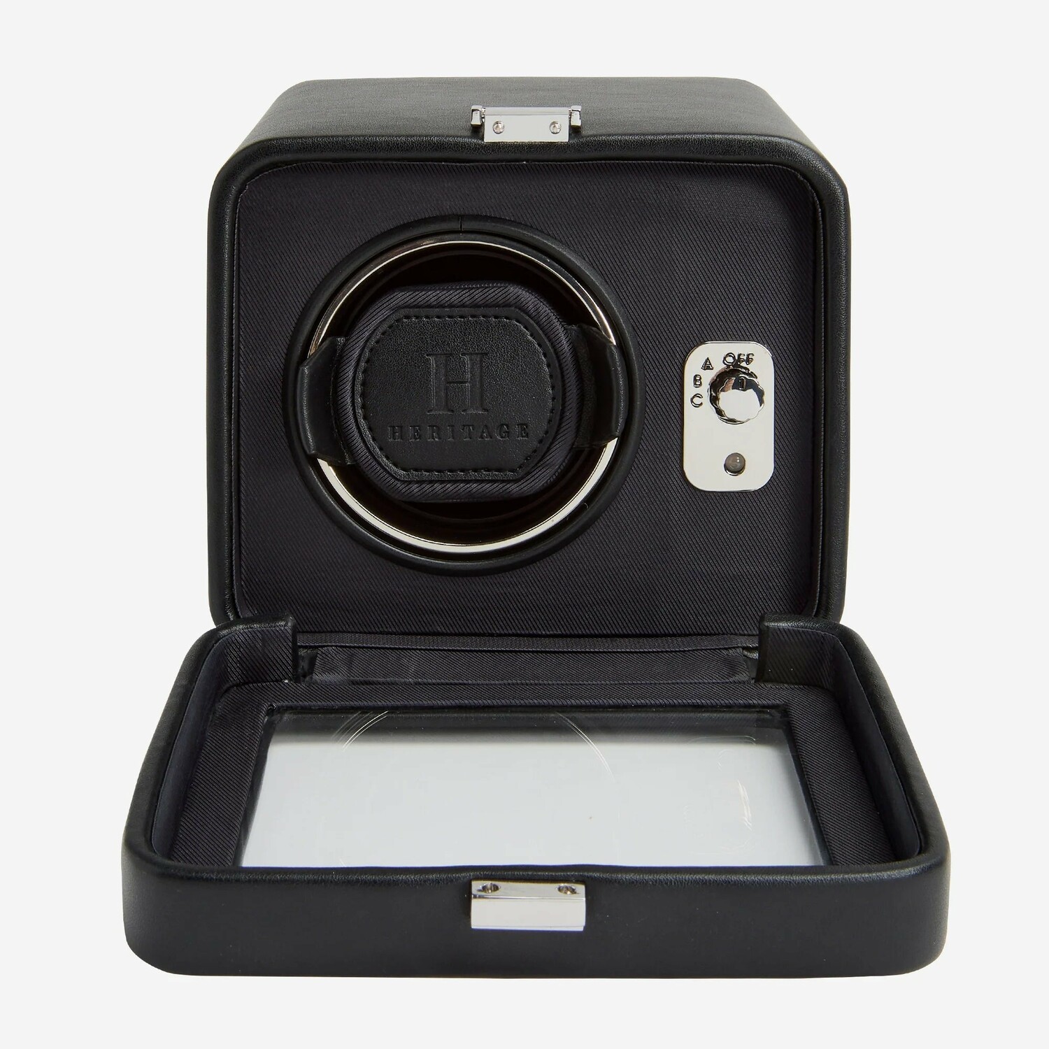 Wolf 1834 // Windsor Leather Single Watch Winder With Cover // Black // 4525029