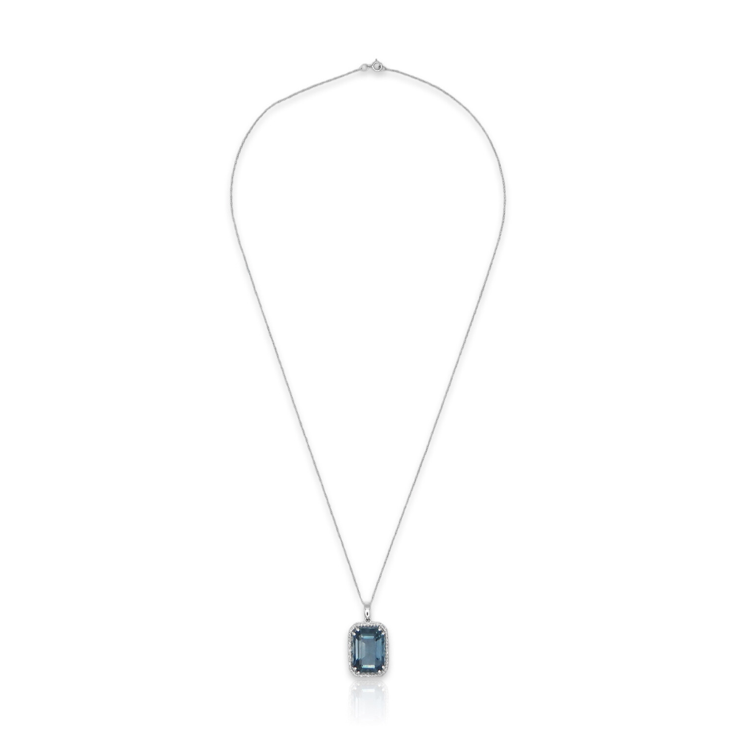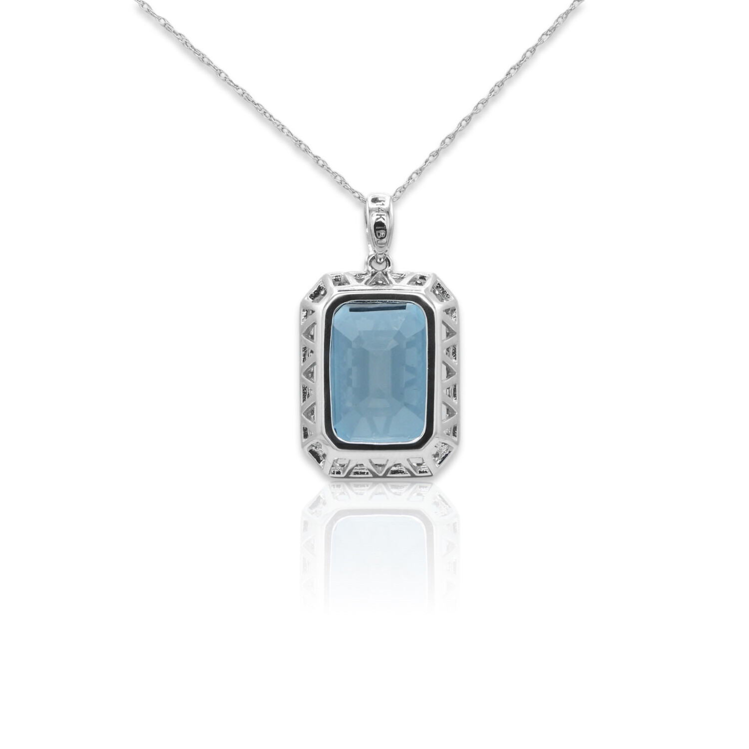 14K White Gold Blue Topaz + Diamond Pendant Necklace // 18" // New