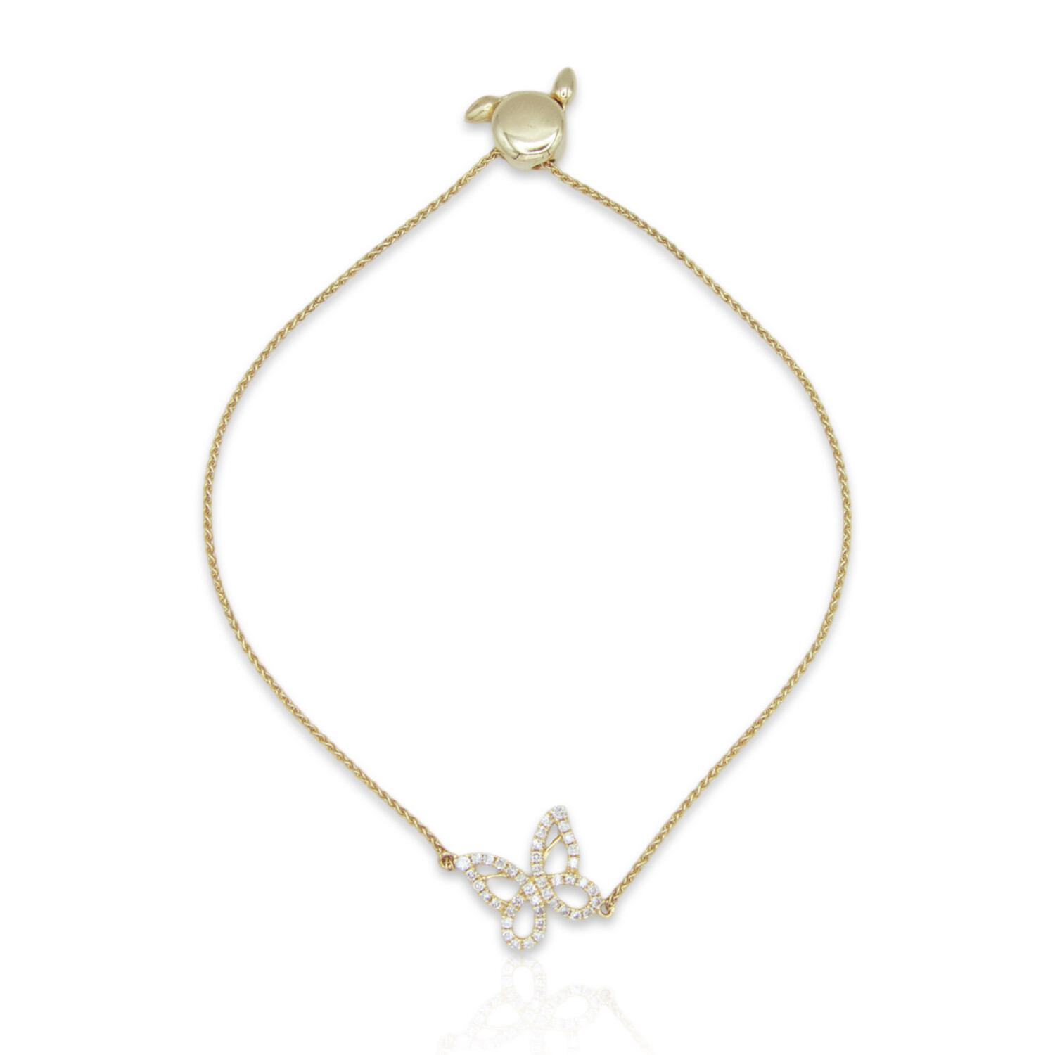 14K Yellow Gold Diamond Butterfly Adjustable Bracelet // Appx. 6.5" // New