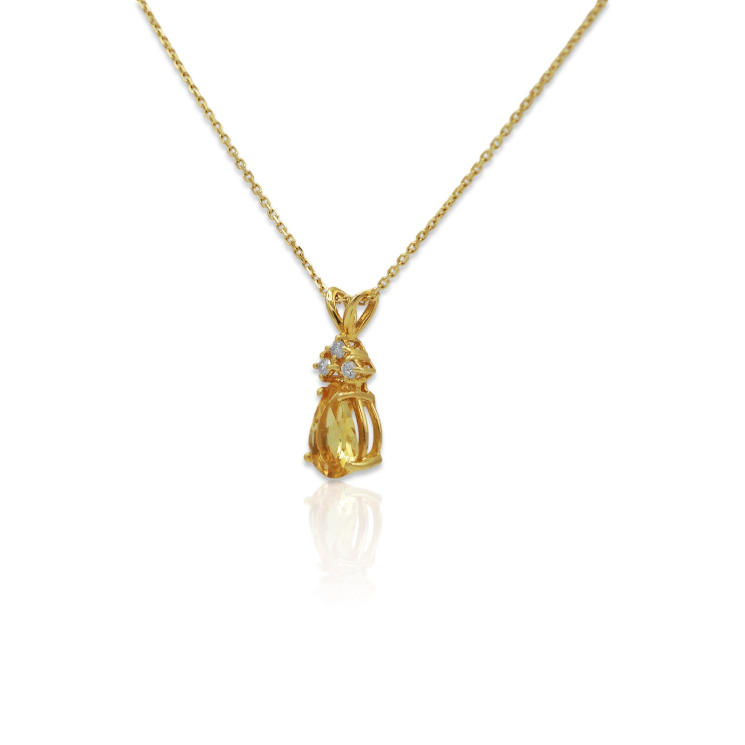 14K Yellow Gold Pear Shape Citrine + Diamond Necklace // 17" // New