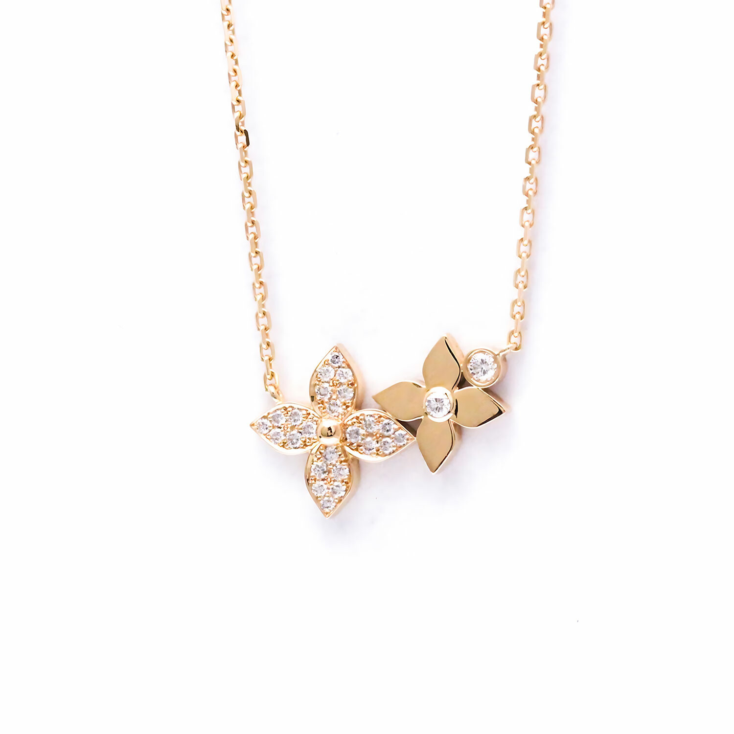 Louis Vuitton // 18k Rose Gold Star Blossom Double Diamond Pendant Necklace // 15.35"-16.14" // Store Display