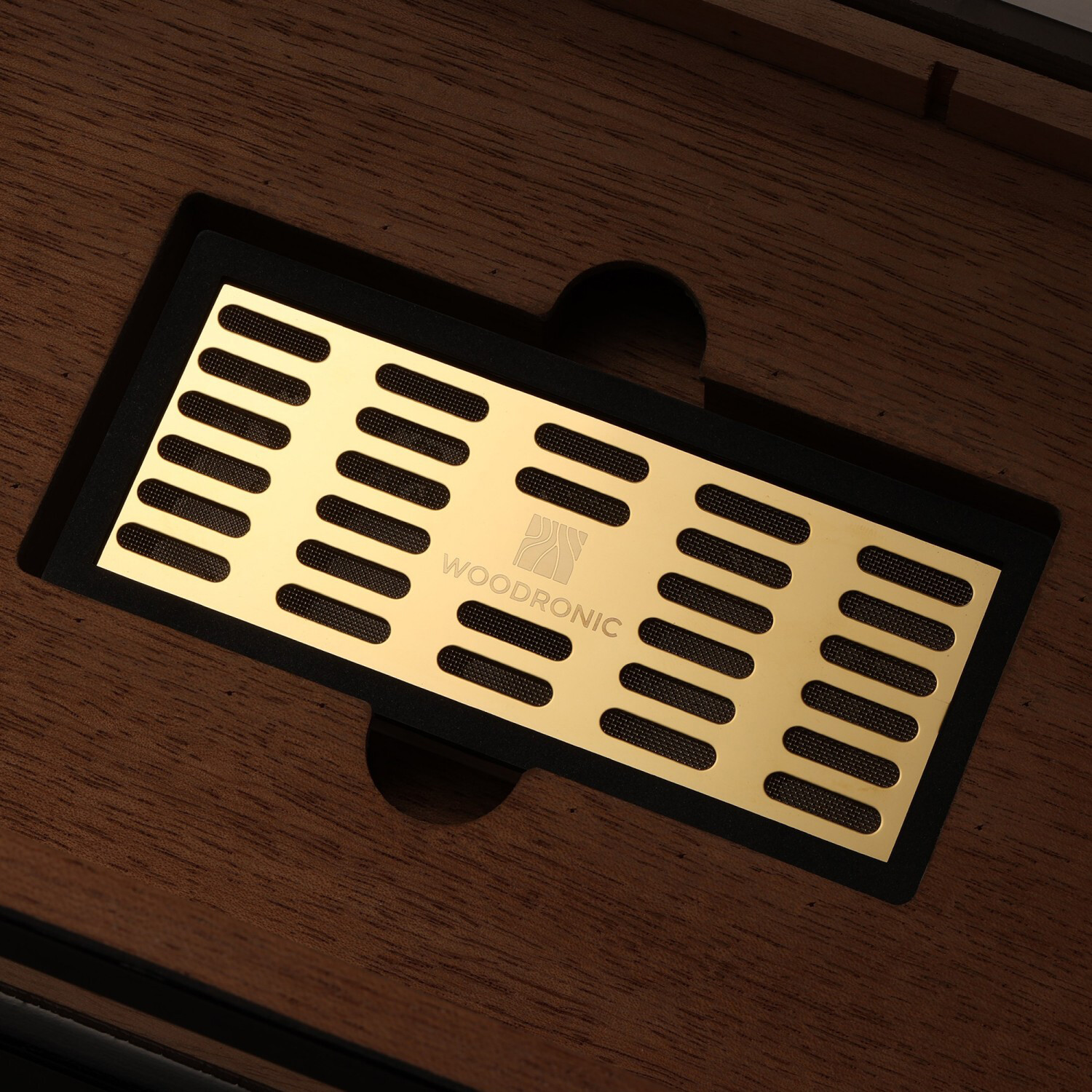 The Inlumino LED Lighted Cigar Humidor brings cutting-edge design and precision cigar care together in one striking package. Available with five vibrant lighting options, its soft ambient glow showcases your cigars with refined elegance. A high-accuracy digital hygrometer and integrated humidification system maintain a consistently stable environment to protect and preserve your collection. Designed to hold 100–120 cigars, the humidor includes crystal-clear acrylic dividers that offer effortless organization without disrupting airflow. A reinforced seal locks in moisture, ensuring your cigars retain their flavor and texture through every season. Ideal for those who value both style and performance, this humidor transforms your collection into a centerpiece. Backed by Woodronic’s 1-year warranty.