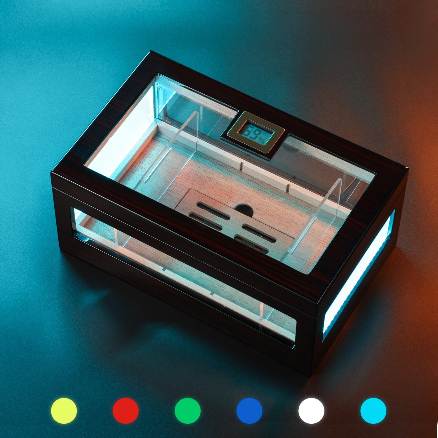 Inlumino LED Lighted Cigar Humidor – 5 Color Options, Digital Hygrometer and Humidifier, Acrylic Dividers, 100–120 Cigar Capacity